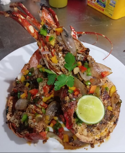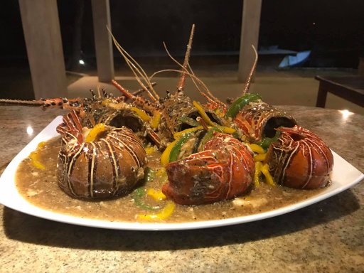 Lobster, always cooked to perfectiom, with herbs and spices.