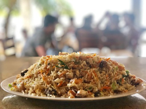 Fresh seafood of all sorts, mixed with rice. Tasty and filling!