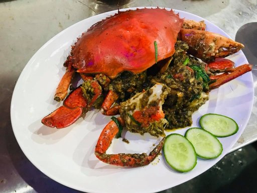 Fresh grilled crab, with crushed garlic and a side serving of delicious sauce.